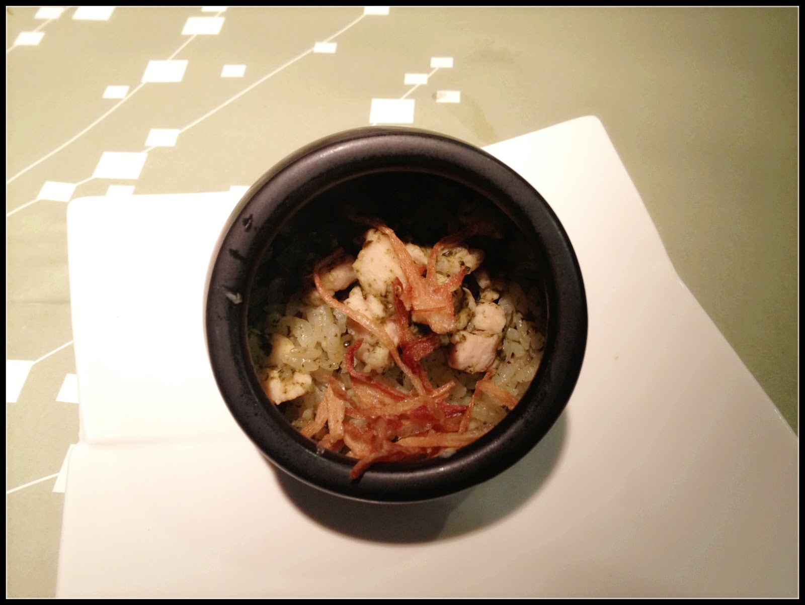 上面灑著一些芝麻香、海苔、辣椒粒,配醃蘿蔔很好吃